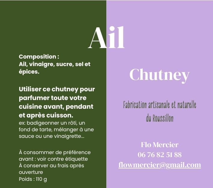 Ma tante est cheffe privée, depuis petite, je l'aide à faire ses chutneys, en été, pour vendre à des restaurants proches de là où je viens (66). Avec les années, je ne peux plus être avec elle, mais elle compte désormais sur moi pour réaliser les étiquettes de ses pots !